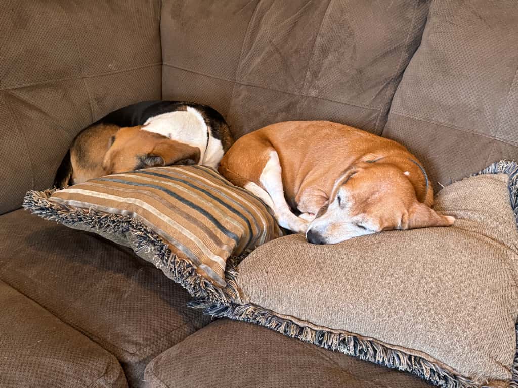 then she crawls up on the top of the couch like many of our smaller sized beagles tend to like to do
