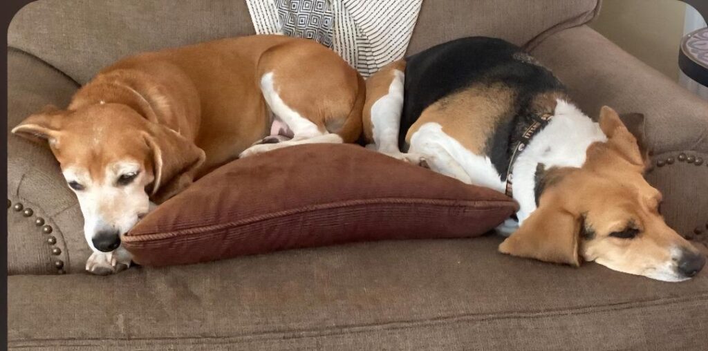 It’s like a family reunion when our beagles come back to visit us for Pampered Pet Visits ! orange girl “Roonie” stayed with us one summer while her owner was on safari in Africa !!
