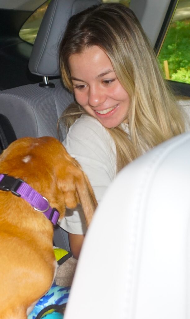 “Sunny” went home with the Elwood’s daughter Grace and her boyfriend who drove down from Penn. to bring her home.