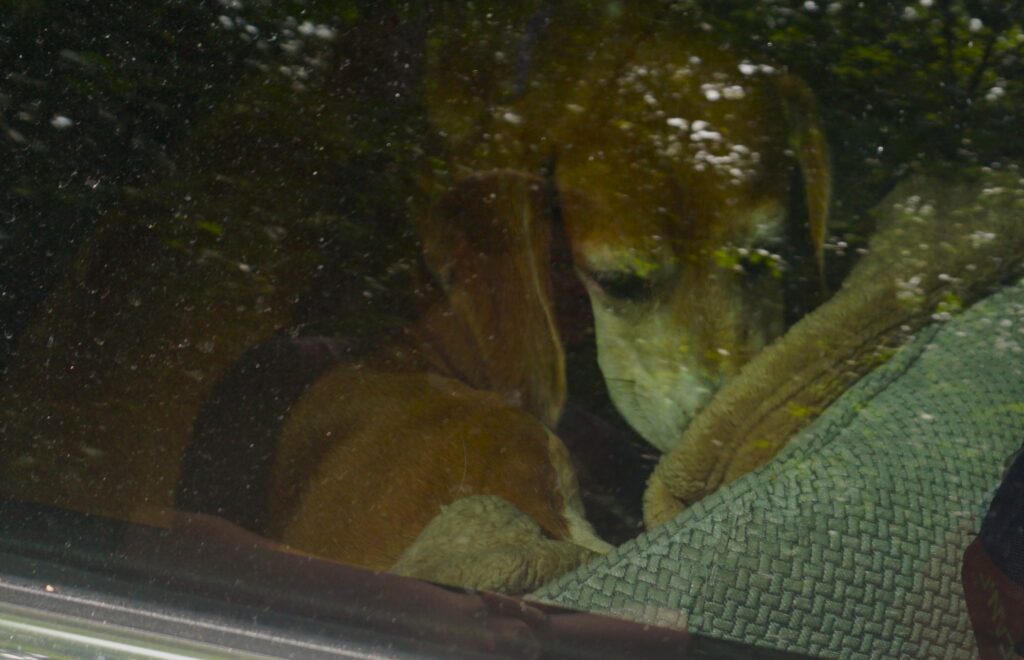 Sunny said goodbye to her pups and got her scent on their things like Mocha’s bed the Dunnuck’s had sent ahead for this.