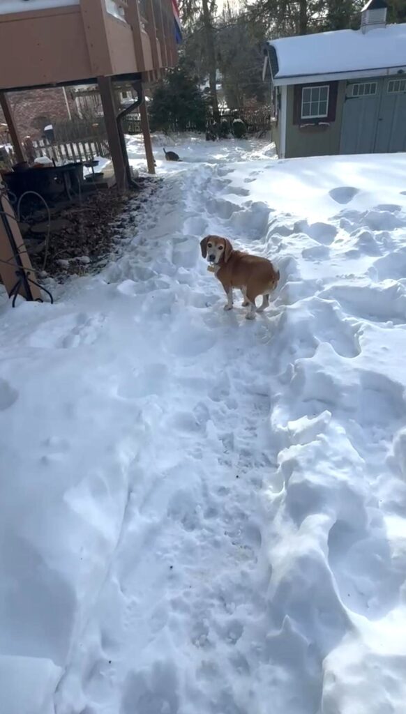All is well with Banjo. He has learned to pee on the grass. I was on a Zoom call this morning when Banjo got up, walked out the sliding door to his grassy area (all fenced and safe) and peed on the grass! I had to mute myself to give him a treat and praise him – lol!