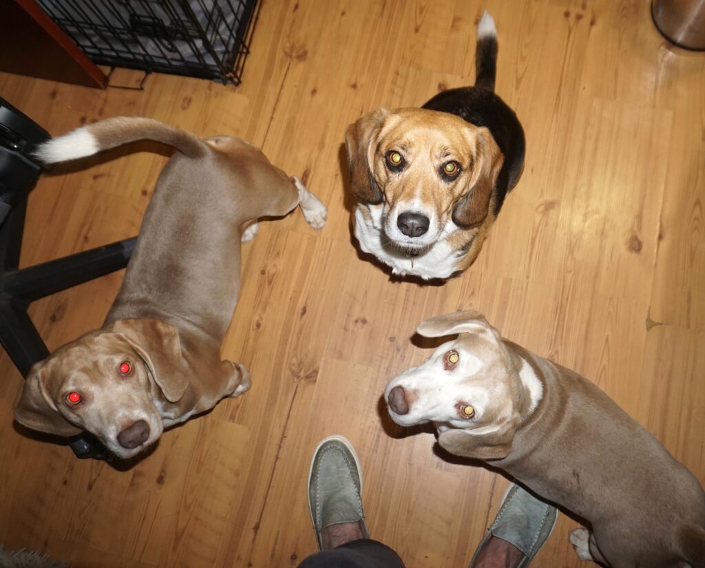 Teddy’s girls say hello to tri colored “Sirius” who is also staying with us for the weekend this time while his family goes to Myrtle Beach