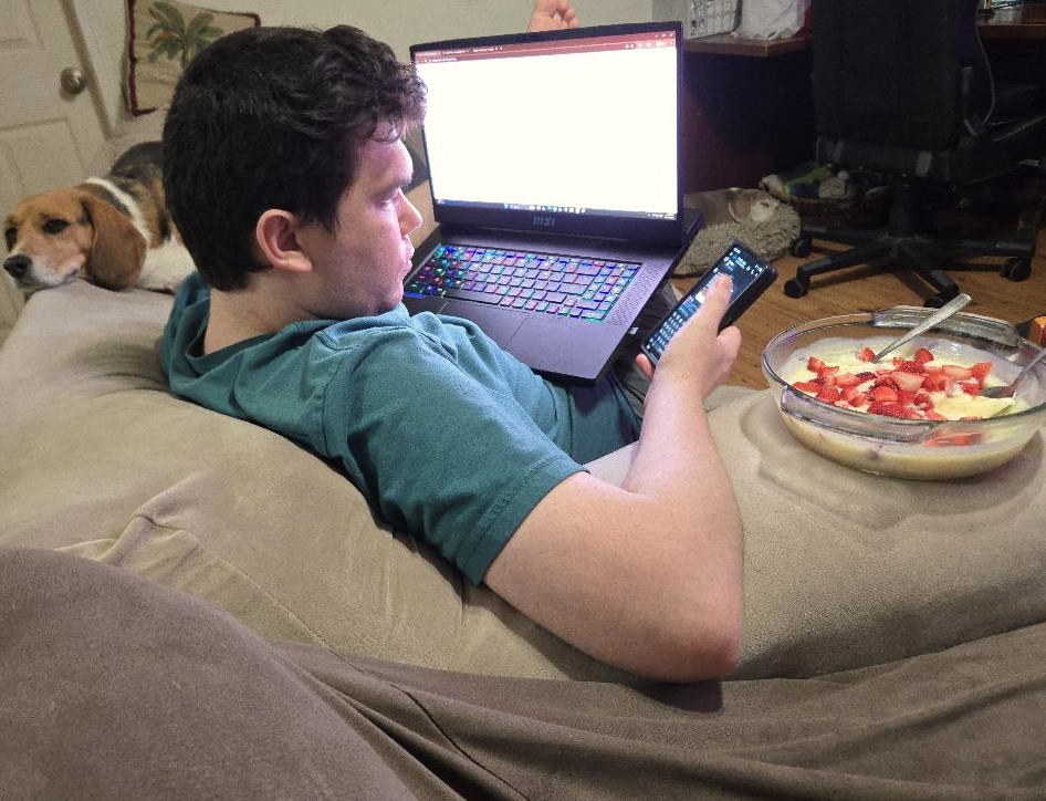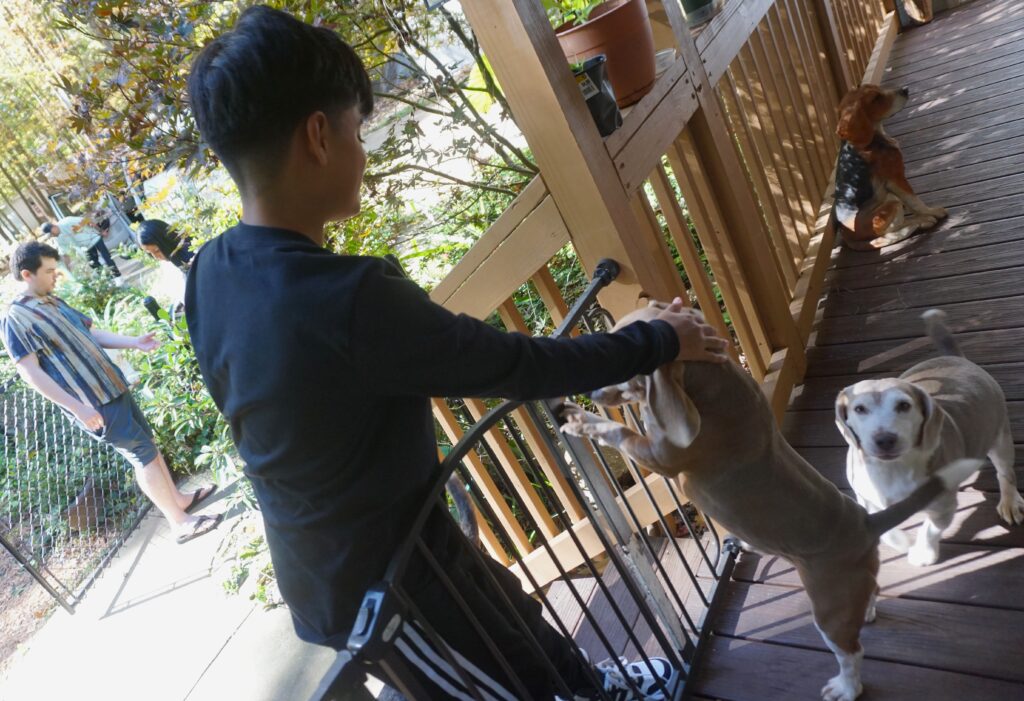 the other boys run around the yard while he gets some love and makes everyone Happy !! It’s his Job here lol