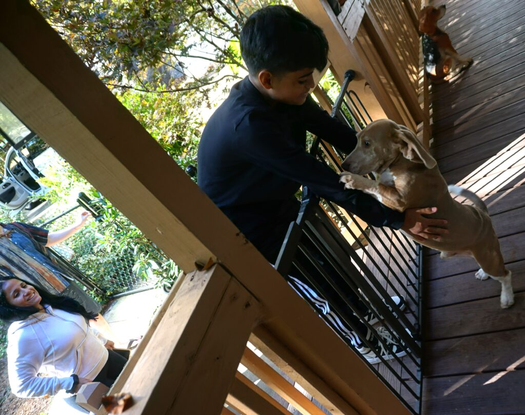 finally the day arrives and his family arrives to take him home… he knows the sound of their truck coming up the driveway!